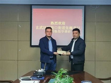 4月21日下午,新街口街道黨委書記張巍一行到我公司調(diào)研指導(dǎo)工作,深入了解了企業(yè)落實(shí)疫情防控和復(fù)工復(fù)產(chǎn)情況,并送來了疫情防控慰問專項(xiàng)資金。